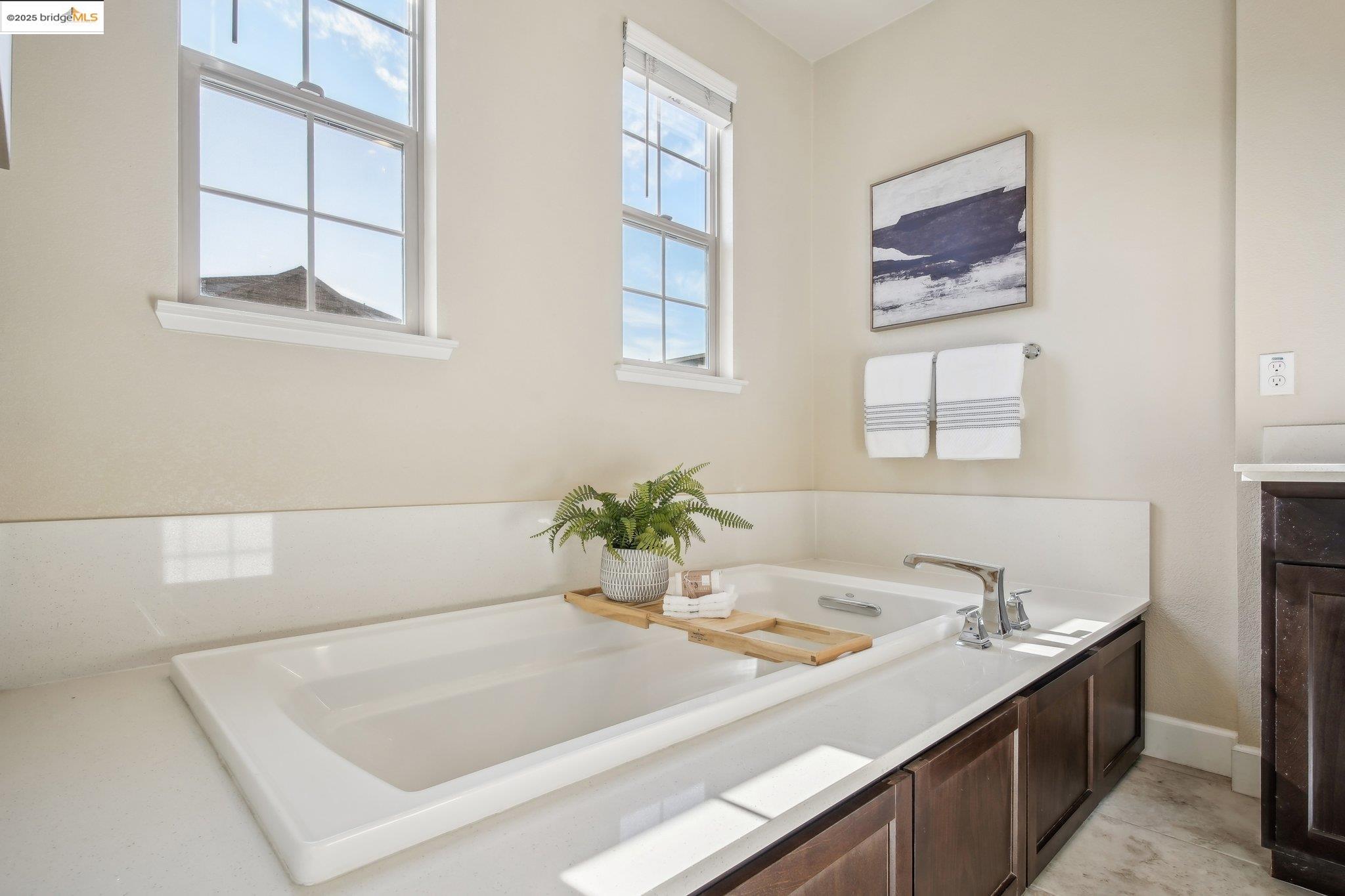 ASK ABOUT HOA INCENTIVES. A stunning 4-bedroom, 3-bathroom corner unit condominium nestled in Livermore's desirable Sage Community. One full bedroom and full bathroom on the first floor. Abundant natural light and modern finishes. The kitchen is a culinary dream with a spacious island, stainless steel appliances, quartz countertops, and a striking mosaic backsplash. The luxurious primary suite boasts an oversized shower, soaking tub, double vanity, and a walk-in closet, while the first-floor bedroom and bathroom offer convenience for guests or multi-generational living. A second-floor loft provides the perfect space for relaxation or entertainment, and a dedicated laundry room with a sink adds everyday ease. Thoughtful upgrades include a tankless water heater, split-zone A/C and heating, low-flow plumbing fixtures, EV charger, solar-ready setup, and a 2-car garage with epoxy floors and ample storage. Step outside to a private patio and low-maintenance landscaping. Residents of Sage Community enjoy resort-style amenities, including a clubhouse, fitness center, swimming pool, bocce and basketball courts, BBQ areas, and scenic fitness trails. Located minutes from BART, freeway access, a lively downtown, and over 40 world-class wineries.